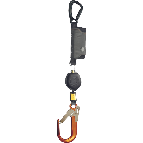 Skylotec self-retracting fall arrester PEANUT I standards: EN 360: 2002 length: 1.8 m load capacity: 135 kg weight: 1.62 kg CHARACTERISTICS: self-retracting fall arrester with webbing and integrated shock absorber and aluminum carabiner STAK TRI (opening 22 mm, 28 kN ) on the webbing is an aluminum hook FS 90 AL (opening 60 mm, 22 kN) USE: scaffolding, mobile work platforms, steel structures