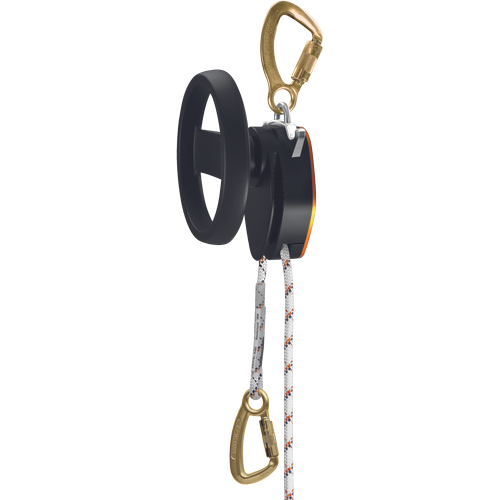 Skylotec MILAN 2.0 HUB is THE standard rescue device in the industry with additional lifting function. With the help of the hand wheel, the casualty can be lifted over a short distance to release his lanyard and lower him safely. The device is optimised for personal rescue.