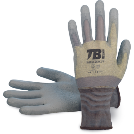 • grey seamless nylon and carbon fibre glove dipped in white PU • knitwrist cuff • 13 GG • antistatic = 10^6 Ohm
