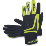• black digitized synthetic leather glove with high visibility polyester, neoprene and foam back • reinforced thumb and index • Velcro closure • washable • neoprene knitwrist