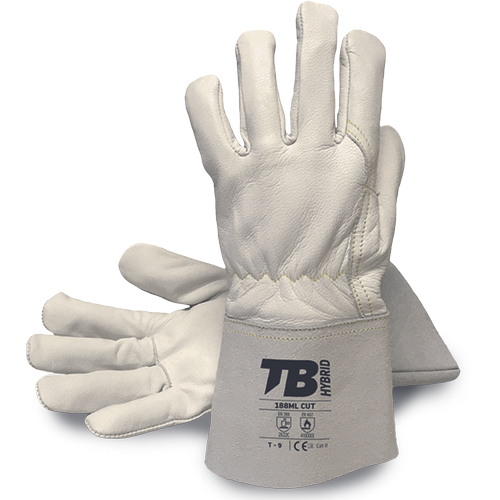 • grey goat grain leather • para-aramid+fiberglass lining • split leather cuff of 10 cm • para-aramid thread