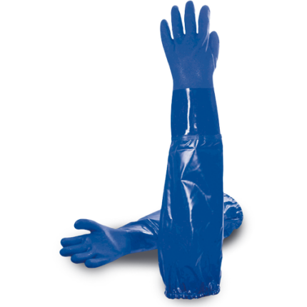 • blue nitrile double dipped glove • seamless white nylon liner • total length: 30 cm • nylon Seamless interior, promotes movement. It does not cause irritation • double-layer nitrile ensures prolonged exposure to certain products • rugged palm provides greater grip
