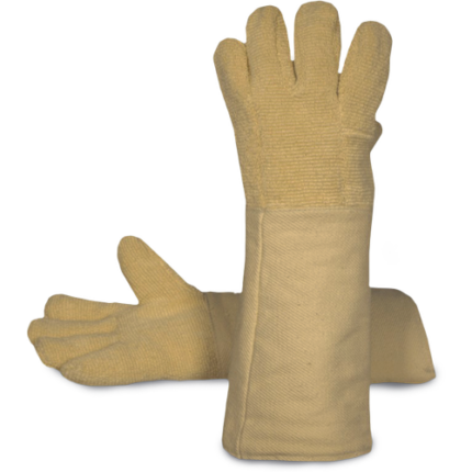 • para-aramide loop fabric glove • white double cotton lining • high density fibre provides high resistance to cutting • Kevlar para-aramid lining which greatly protects against abrasion and fire • heat resistant • ambidextrous • 40cm long for better forearm protection