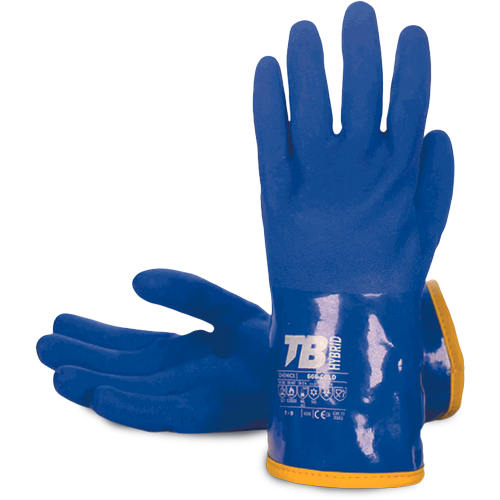 • blue PVC triple dipped glove • yellow loop acrylic lining • thickness: 1.5 mm • total length: 30 cm • 10 gauge