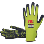 • hi-vis yellow seamless elastane and cotton gloves dipped in foam nitrile coating on palm and with zebra design PVC grip on palm • knitwrist cuff • 13 GG