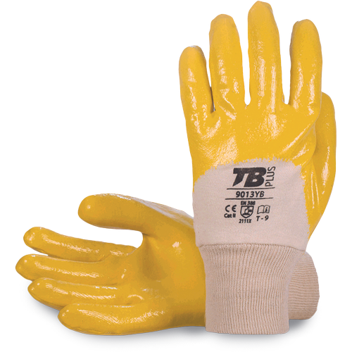 • glove with interlock cotton liner • yellow nitrile 3/4 coating • knit wrist