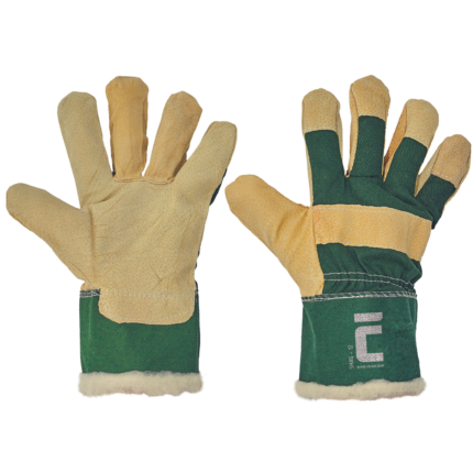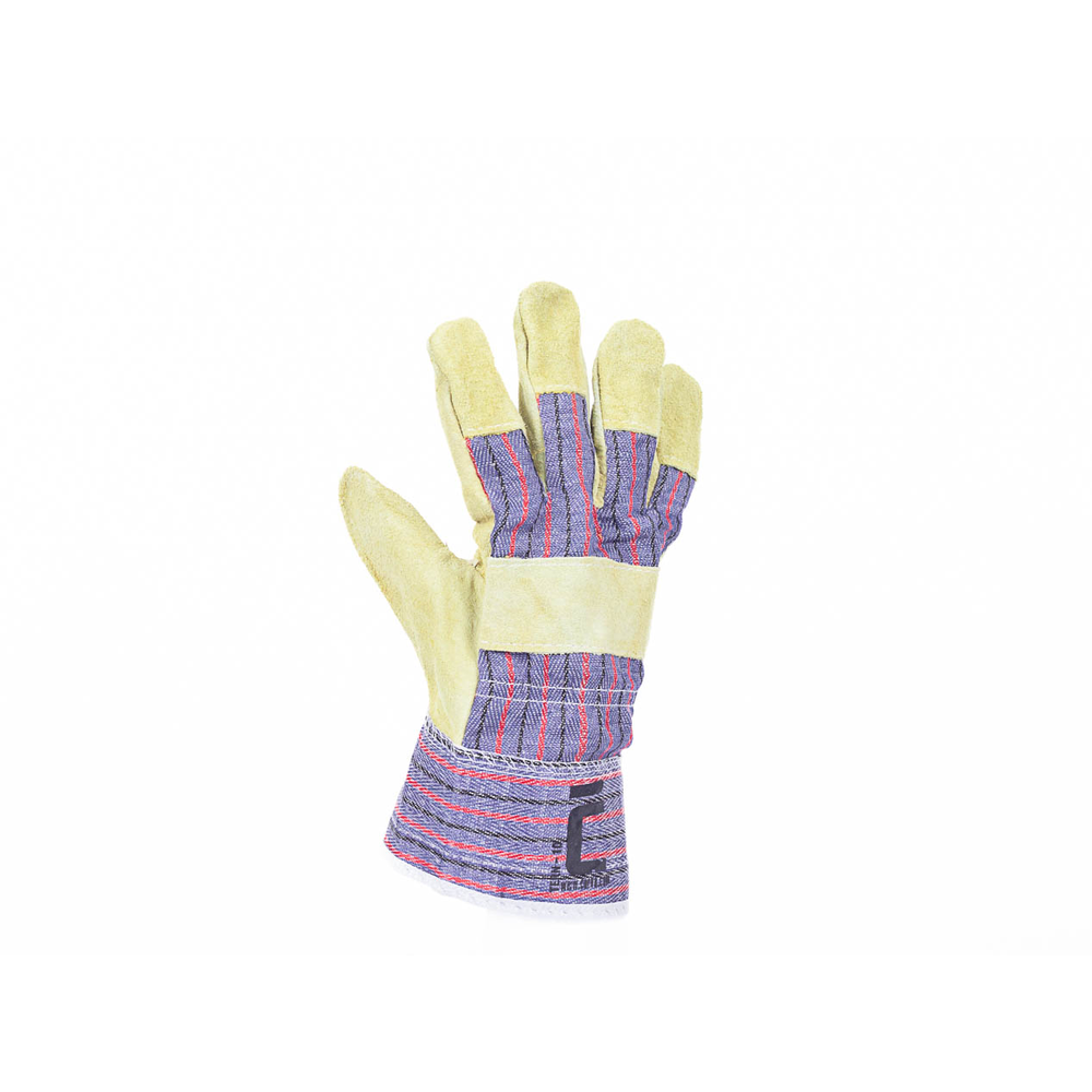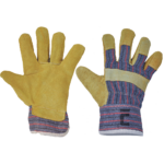 Rękawice wzmacniane dwoiną bydlęcą, z podszewką w części chwytnej dłoni, grzbiet oraz mankiet bawełniane.