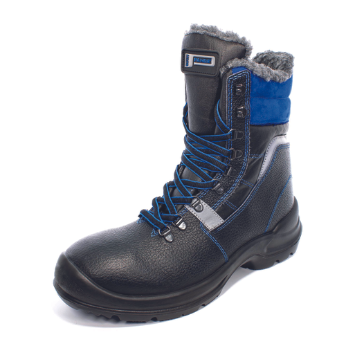 Wysokie wodoodporne, ocieplone obuwie robocze, bez stalowego podnoska, z antystatyczną, antypoślizgową odporną na kwasy i oleje podeszwą wykonaną z PU/PU, absorpcja energii w obcasie, cholewka wykonana z oddychającej skóry, elementy odblaskowe w celu zwiększenia widoczności.