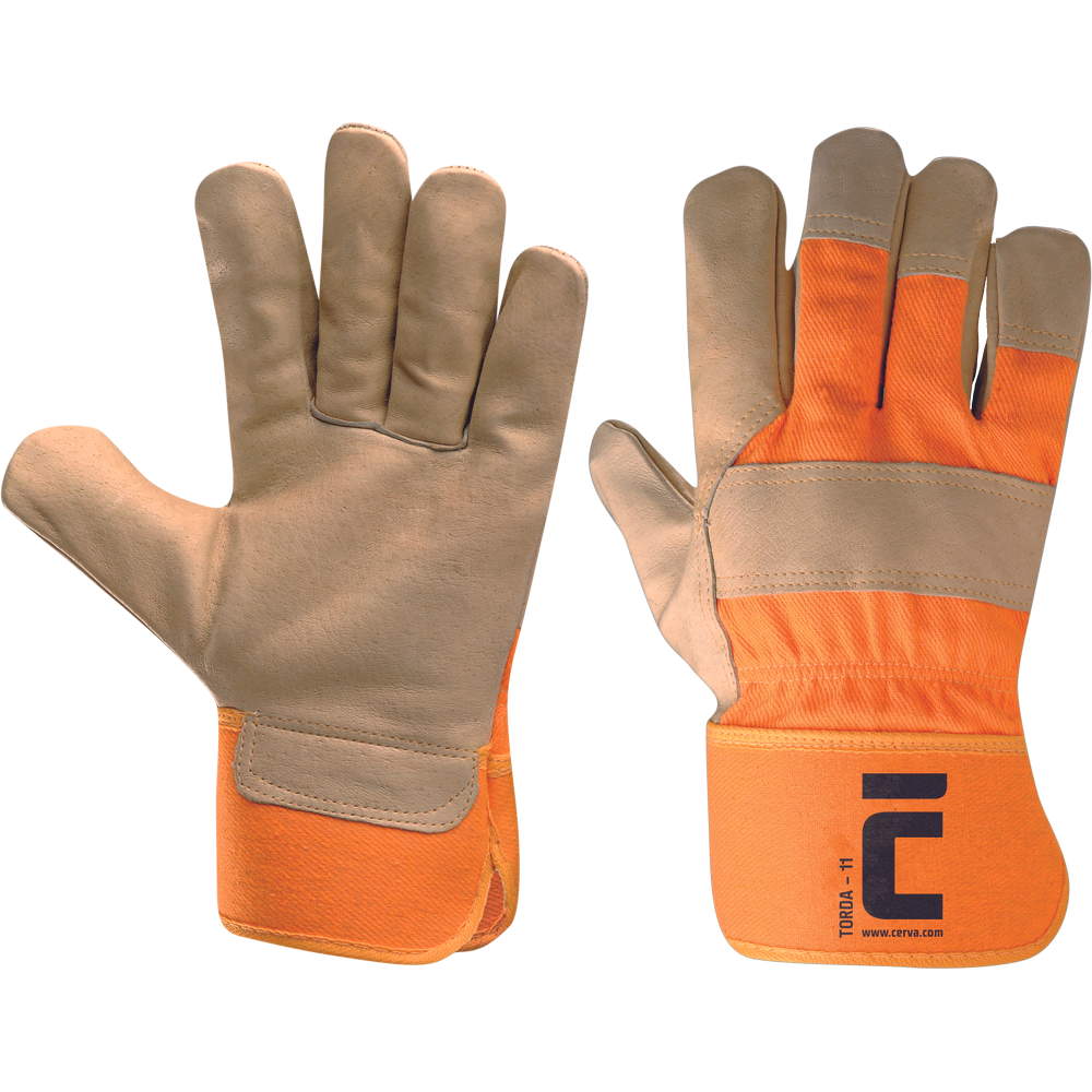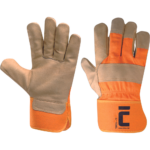 Szyte rękawice Hi-Vis wykonane z mieszanki poliestru i Spandexu wzmacniane syntetyczną skórą w części chwytnej i na koniuszkach palców. W części chwytnej dłoni silkonowy zadruk dla zwiększonej chwytności, neoprenowy mankiet zapinany na rzepy Velcro. Wstawka frotte chłonąca pot na wierzchniej części kciuka.