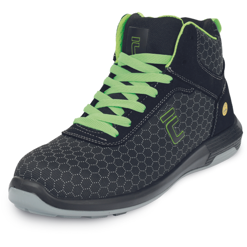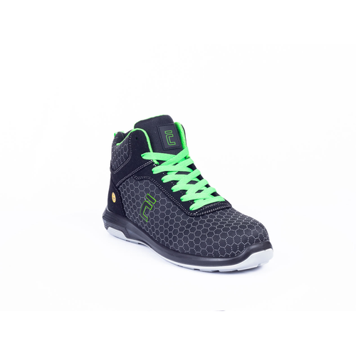 Ochronne obuwie ESD z aluminiowym podnoskiem i kevlarową wkładką antyprzebiciową. Antystatyczna, antypoślizgowa i olejoodporna, gumowa podeszwa z systemem Air Tubeless dla zwiększonego komfortu użytkowania. Cholewka z mikrofibry.