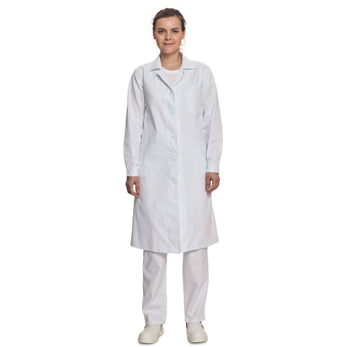 • damski fartuch roboczy z długim rękawem • 3 kieszenie, pasek w części tylnej