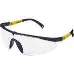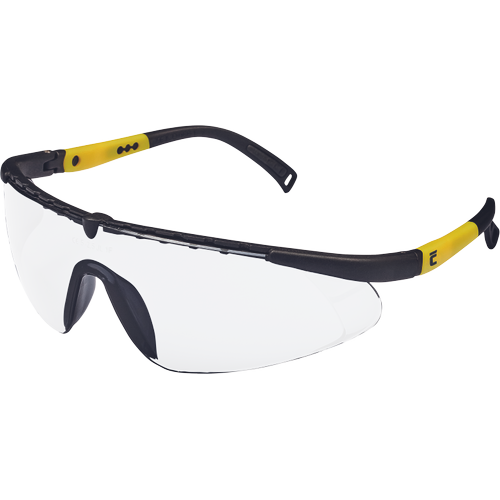 Okulary z szybkami poliwęglanowymi, regulowany kąt nachylenia i długość ramion, sportowy wygląd, szybki nieparujące i odporne na zarysowania, klasa F według normy EN 166 – ochrona przed odpryskami ciał stałych o niskiej energii uderzenia, klasa optyczna 1, żółte szybki z filtrem UV według normy EN 170, przyciemnione szybki z ochronnym przeciwsłonecznym filtrem według normy EN 172.
