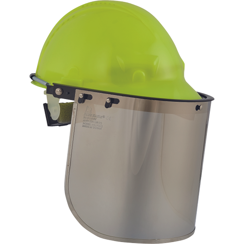 Poliwęglanowa osłona pełnotwarzowa. Osłona posiada specjalną powłokę metalizowaną, zatrzymującą promieniowanie cieplne oraz podczerwone. EN166