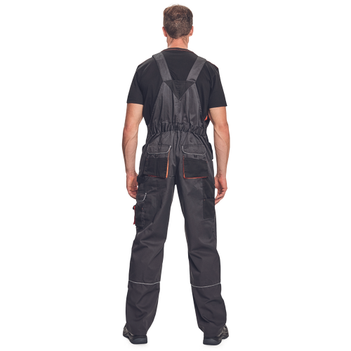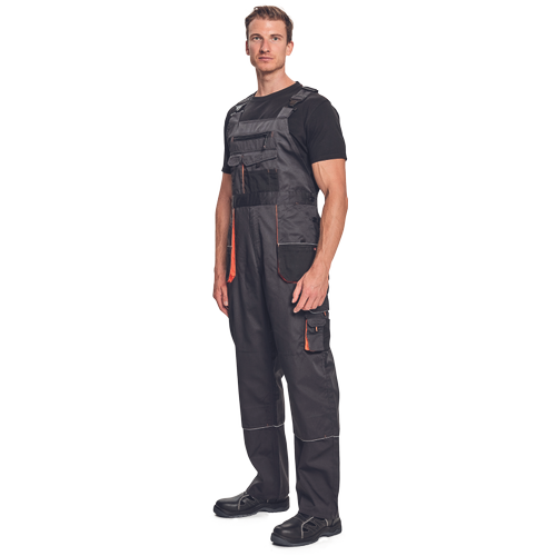 • men's bib pants • 2 front pockets • 2 back pockets • 1 thigh pocket • 1 large multi-functional chest pocket • reinforced knee area with the possibility of inserting knee pads • elastic waist • reflective elements