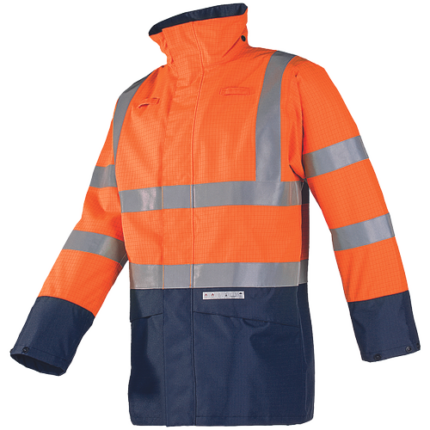 Szyte rękawice Hi-Vis wykonane z mieszanki poliestru i Spandexu wzmacniane syntetyczną skórą w części chwytnej i na koniuszkach palców. W części chwytnej dłoni silkonowy zadruk dla zwiększonej chwytności, neoprenowy mankiet zapinany na rzepy Velcro. Wstawka frotte chłonąca pot na wierzchniej części kciuka.