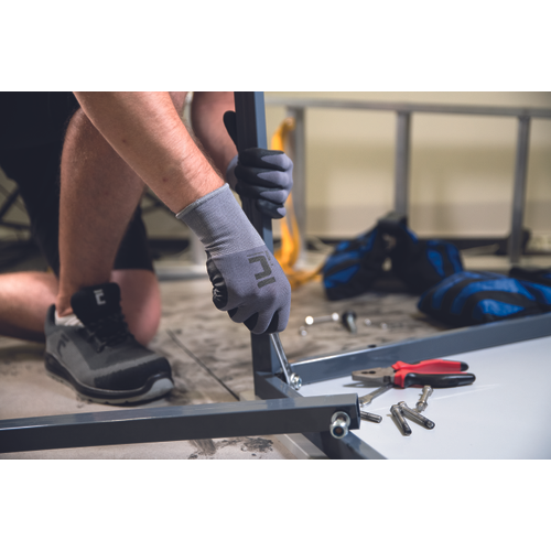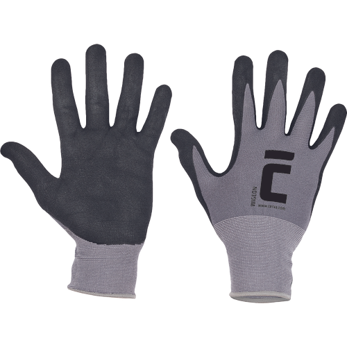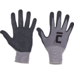 Bezszwowe, dziane rękawice ochronne; materiał nylon/elastan z powłoką nitrylową na dłoni i palcach.