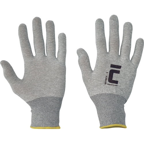 Dziane, bezszwowe, antystatyczne rękawice nylonowe z włóknem węglowym i elastycznym mankietem. ESD.