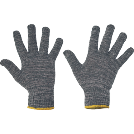 Szyte rękawice Hi-Vis wykonane z mieszanki poliestru i Spandexu wzmacniane syntetyczną skórą w części chwytnej i na koniuszkach palców. W części chwytnej dłoni silkonowy zadruk dla zwiększonej chwytności, neoprenowy mankiet zapinany na rzepy Velcro. Wstawka frotte chłonąca pot na wierzchniej części kciuka.