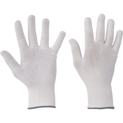 Dziane rękawice wykonane z wytrzymałej mieszanki poliestru i bawełny. Impregnowane latexem. Dodatkowa warstwa na grzbietach chroni stawy.