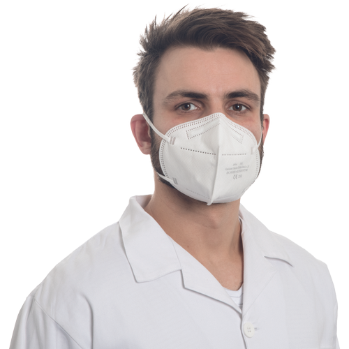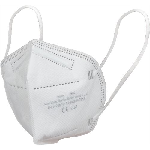 FFP2 NR respirator without an exhalation valve. Package contains 50 pcs and each piece is packed separataly.