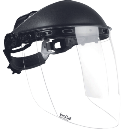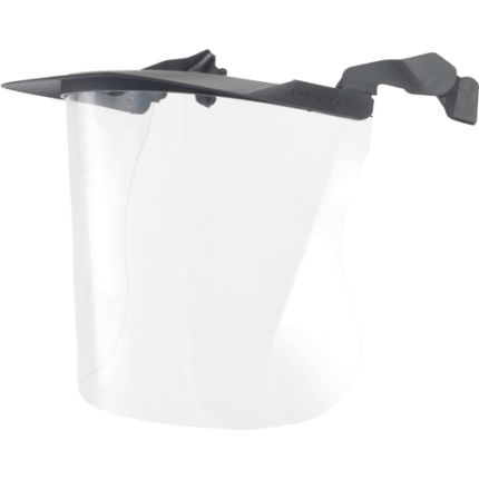 SPHERE face shield offeres an exceptional field of vision of 180°; the easy to rise headgear and brow guard are adjustable for both height and depth and the SPHERE adapts itself to any situation for any use; protection against electrical short circuit arcs; dimension 20.5 x 39.4 cm PC shield; resistant to high energy impact (A marking)
