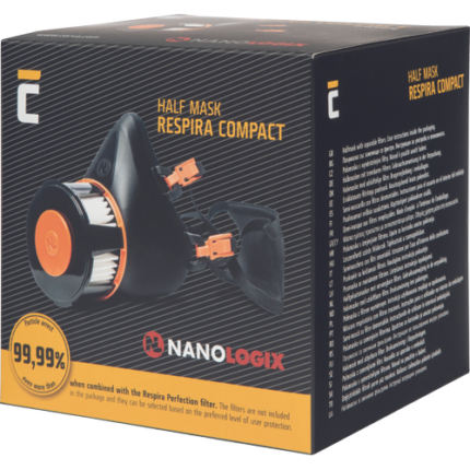 Half Mask Particle arrest even more than 99,99 % in combination with filter Respira Perfection. This product does not containt any natural ingredients rubber latex. The Nanologix Respira Compact facepiece with the P3 filter were tested at the facilities in Těchonín (the Czech Biological Defence Centre) against particularly dangerous diseases classified as biosafety level 3 (BSL 3) such as Korean haemorrhagic fever, typhus, HIV, tuberculosis and anthrax and BSL 4 diseases such as SARS, Lassa fever, smallpox and Ebola. Packaging contains the halfmask only.