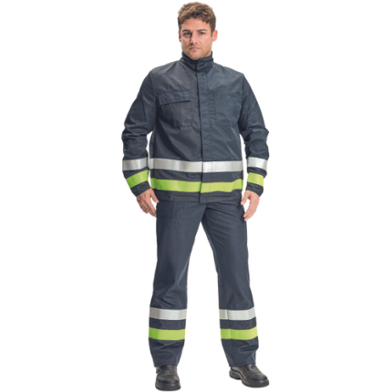 Antystatyczna odzież ochronna zapewnia ochronę przed wysoką temperaturą, płomieniem i łukiem elektrycznym. Zapewnia właściwą ochronę przed efektem łuku elektrycznego generowanego przez pojedynczą fazę zwarcie (7000 A) w sieci niskiego napięcia (maks .: 400 V, napięcie przemienne 50 Hz). Wykonana z materiału antystatycznego (rozpraszanie elektrostatyczne), dzięki czemu może być stosowana w środowisku wybuchowym oraz w pobliżu materiałów łatwopalnych. Jest odpowiednia dla użytkowników pracujących w pobliżu źródeł ciepła i płomieniach. Ubranie zapewnia ochronę przed bezpośrednim działaniem płomienia przez 4 sekundy i przez 7 sekund. przeciw działaniu ciepła o intensywności 20 kW / m2. Materiał jest sam w sobie odporny na wysoką temperaturę i płomień, dlatego cykl prania nie ma na niego wpływu. Naszywana kieszeń napiersiowa